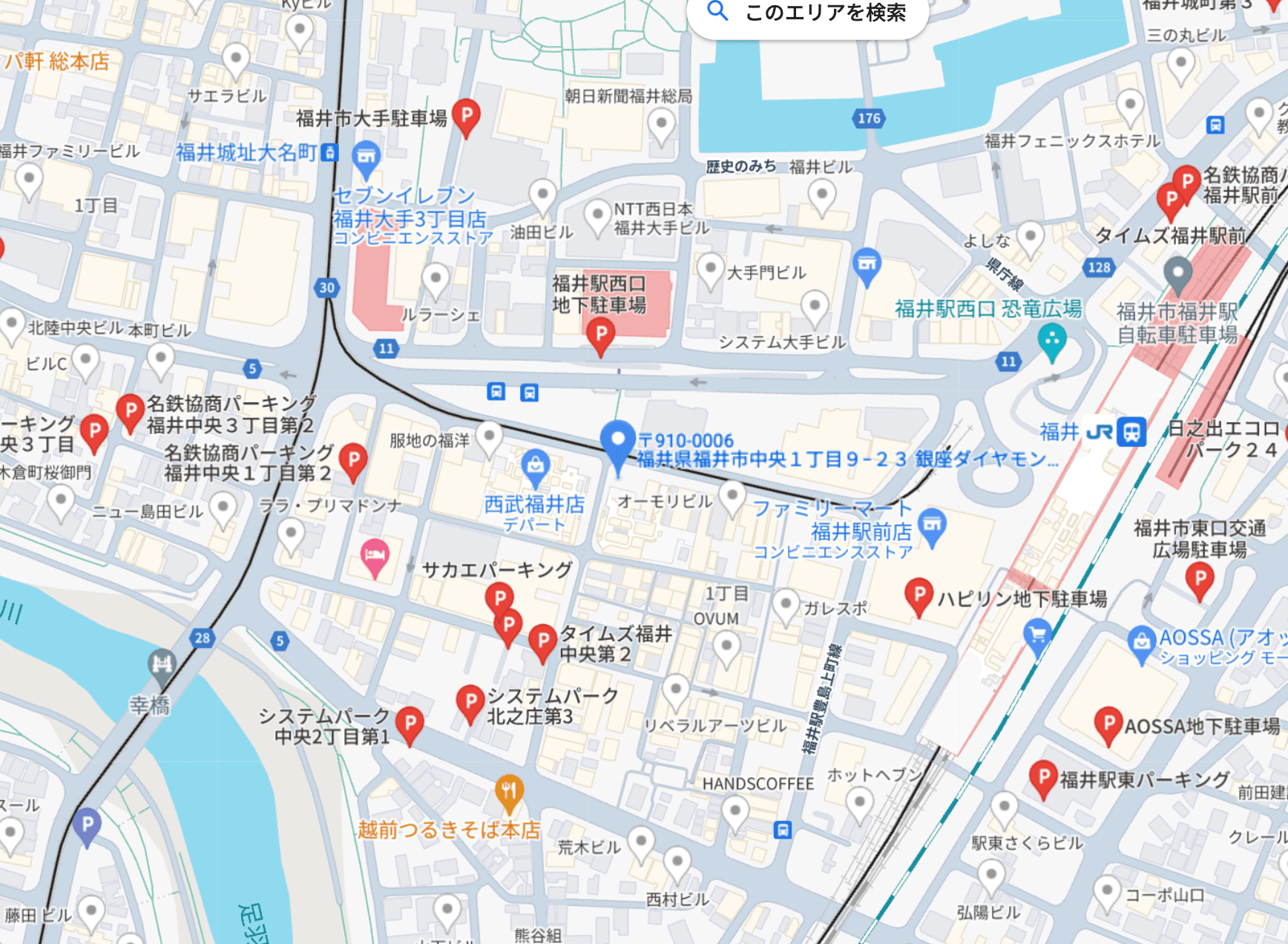 銀座ダイヤモンドシライシ福井店周辺の駐車場情報