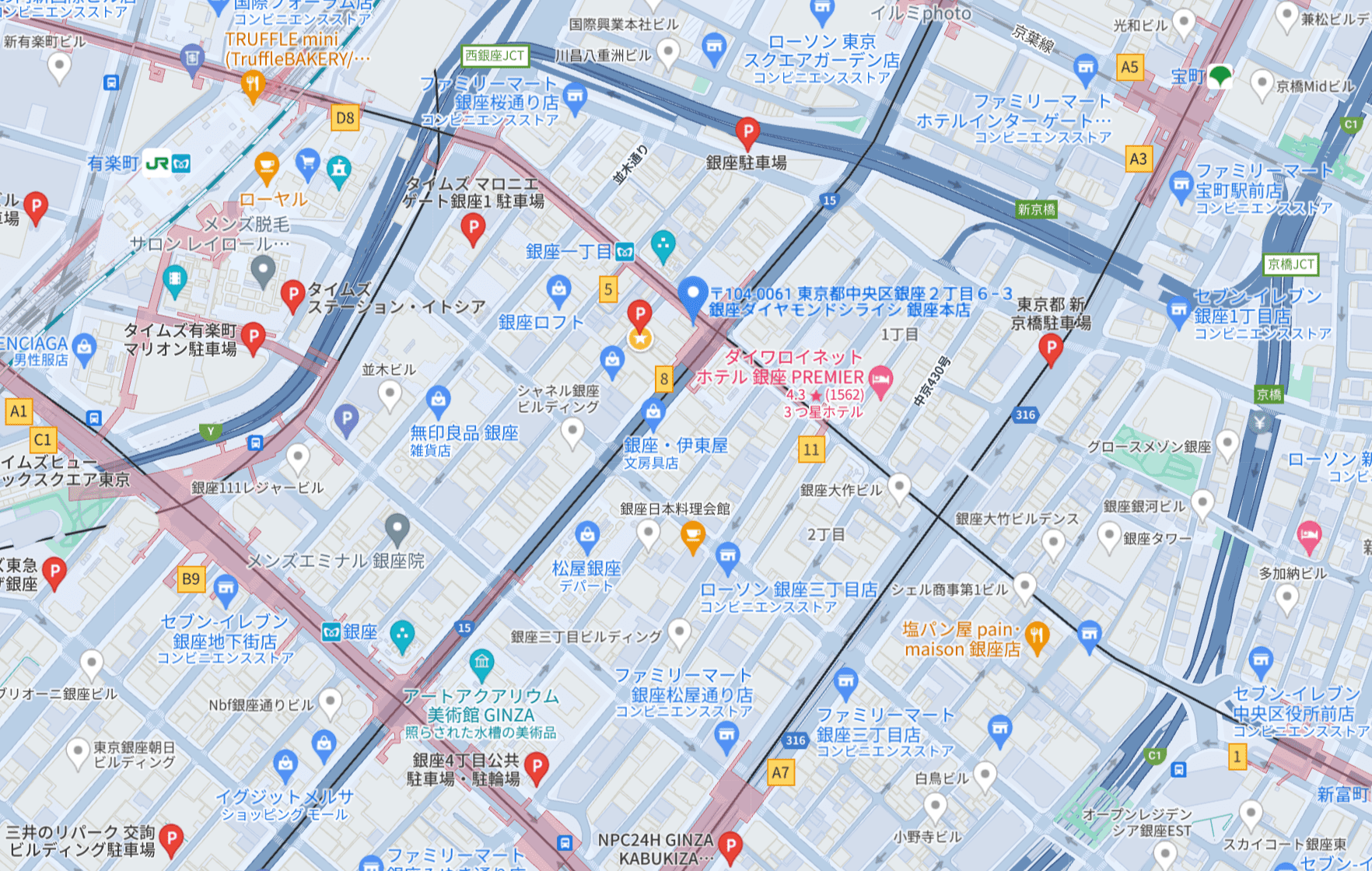 銀座ダイヤモンドシライシ銀座本店周辺の駐車場情報