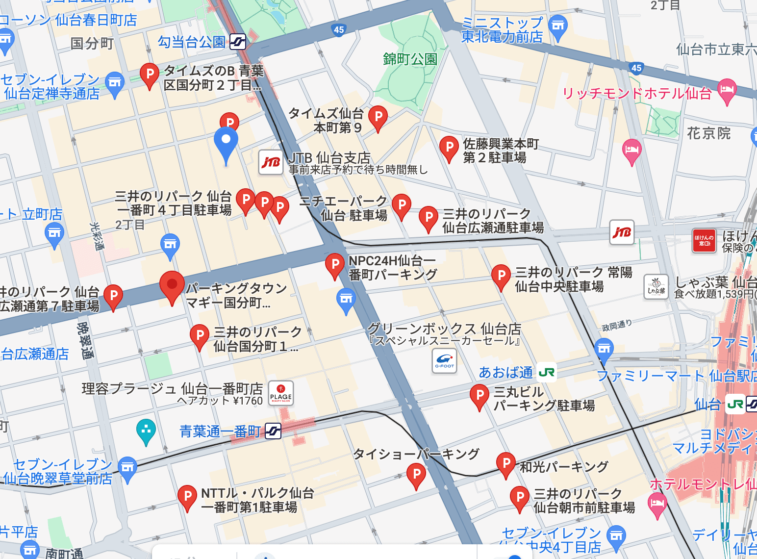 銀座ダイヤモンドシライシ仙台本店周辺の駐車場情報