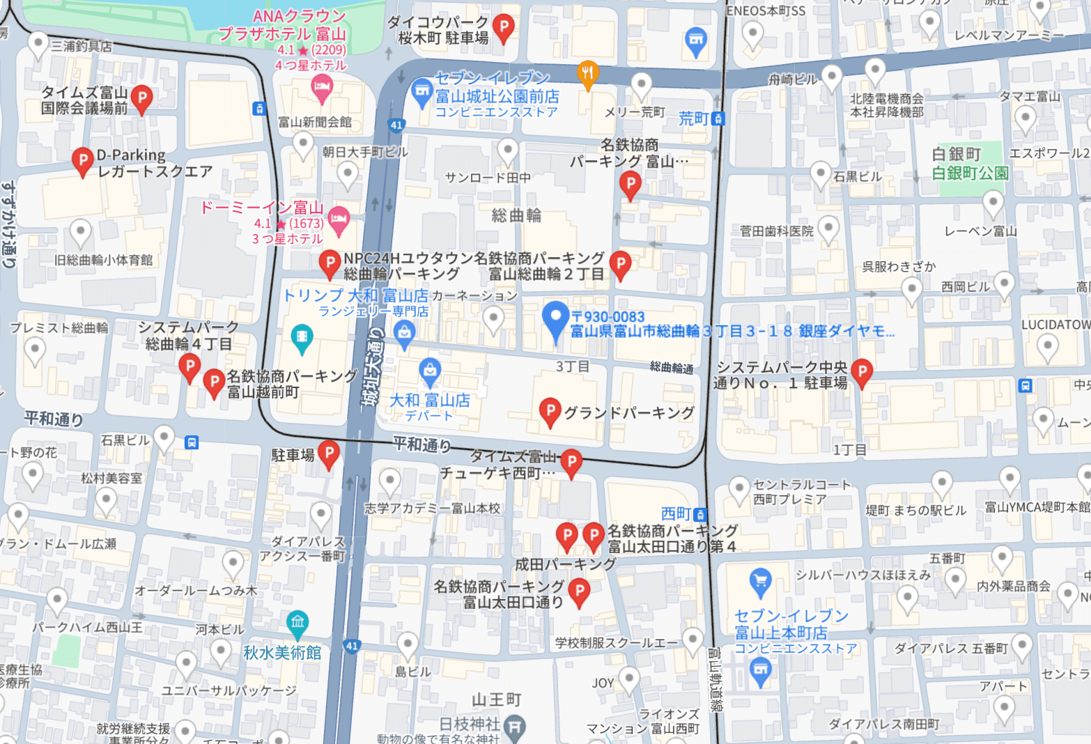 銀座ダイヤモンドシライシ富山本店周辺の駐車場情報